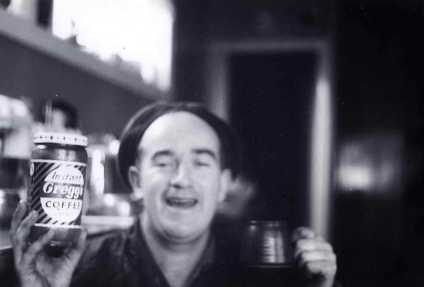 That’s my Dad. In a beret. He drunk Greggs coffee. And all they drank in our house was instant coffee or pots of tea. Mum drank tea and Dad drank coffee and us kids drank milk or Tang. But never at meal times. Mum did not like us to drink at the same time as eating - I was never sure why. No one drank water - it just was not a thing. You certainly never bought water. The water was perfectly good but I can’t remember drinking a glass of it wry often like they did in America. We went through six pints of milk a day though.