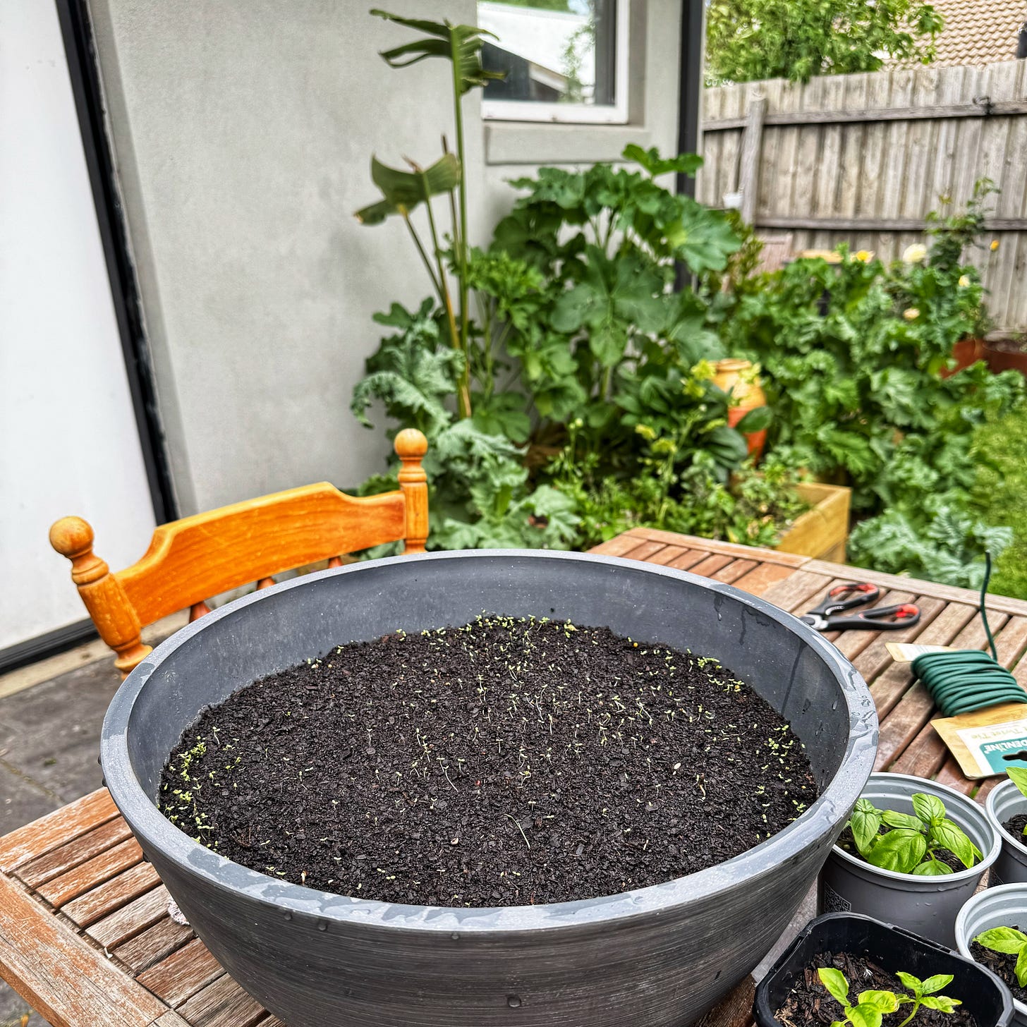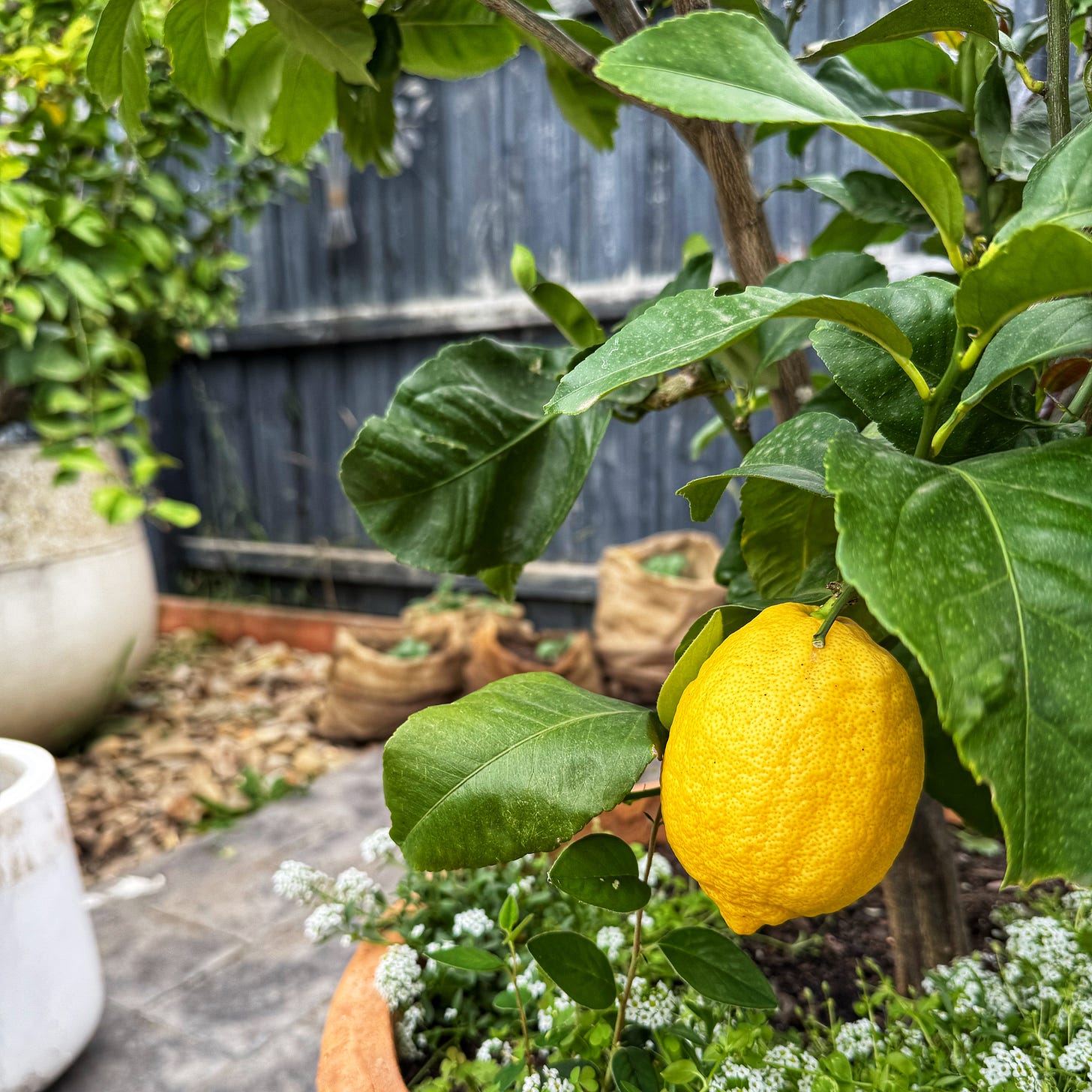 The pots are watered every evening with water from the baby’s bath. So they are all doing super well. The trace of soap in the water helps repel root eating insects like slaters.