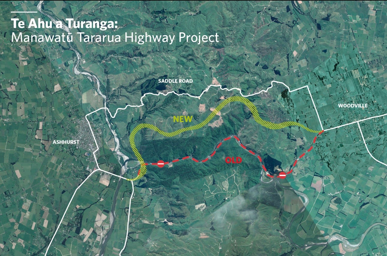 The highway takes its name from Te Ahu a Tūranga, a sacred mound built centuries ago on the high ridge where the new road now runs, a shaped rise in the land made as a place of remembrance for the ancestor Tūranga. The highway kept the name Te Ahu a Tūranga to carry the memory forward, and cultural protocols, monitoring, and mitigation (including karakia, recording, and preservation where possible) were undertaken by the Māori peoples during construction.