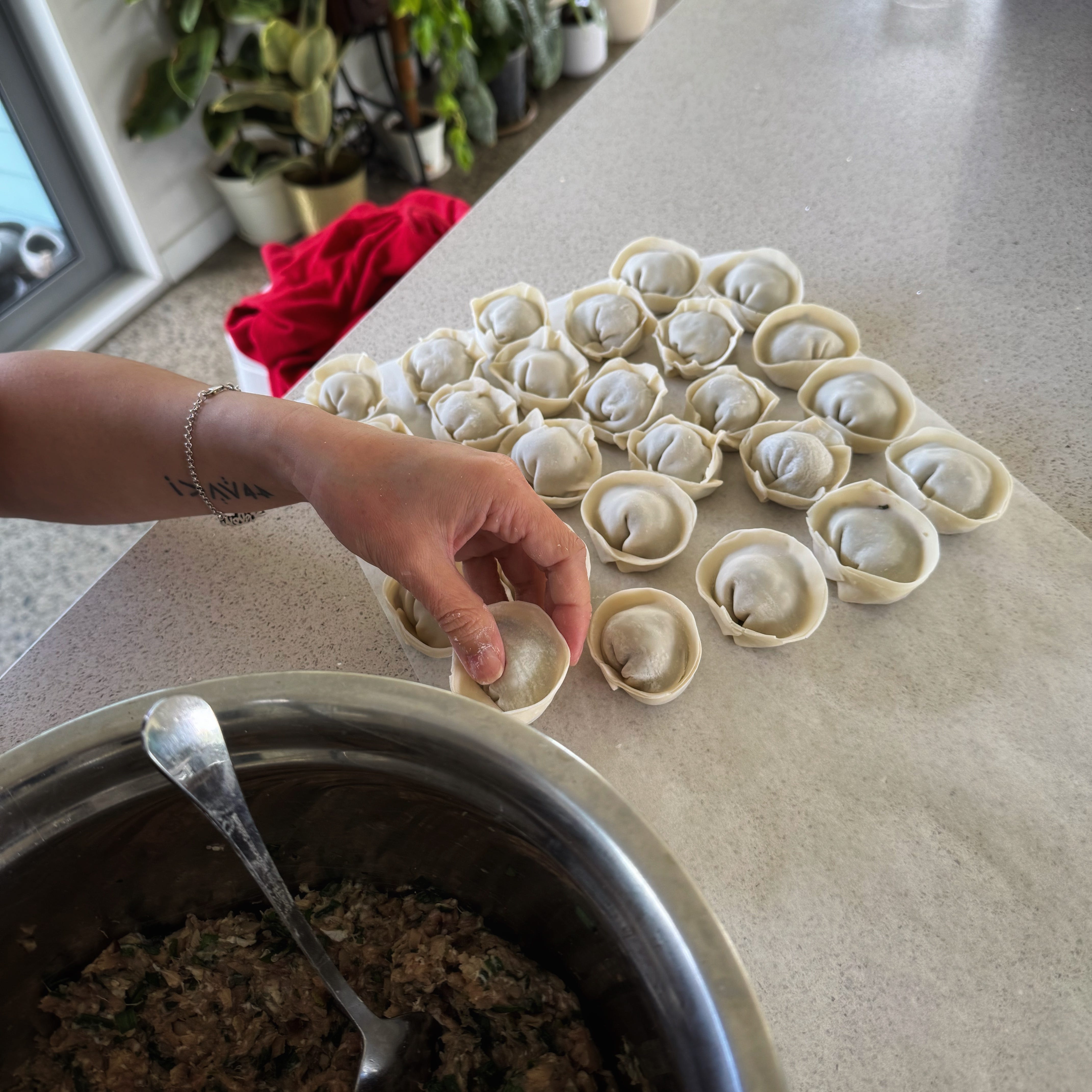 As per usual one person is in charge of the kitchen as we work outside and that person was making dumplings for dinner.
