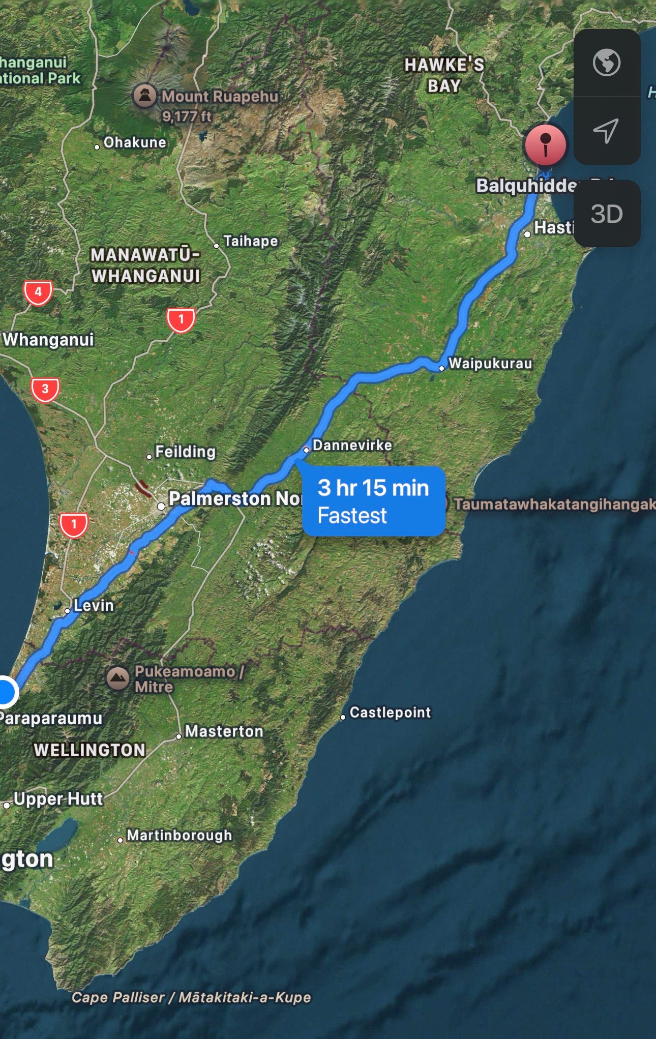 So here is the map of the complete journey I took from one coast to another. Straight through is now a little over three hours from PekaPeka.