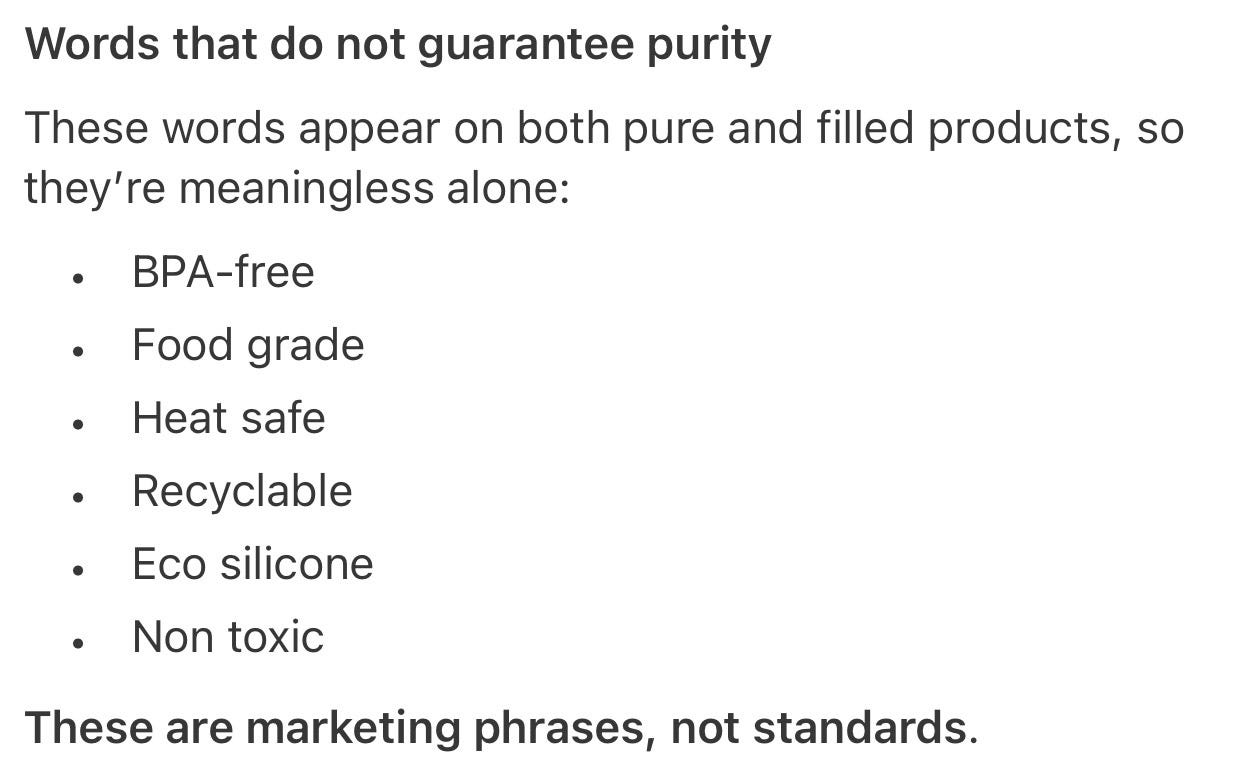But silicone is not biodegradable, not easily recycled, and not always pure.