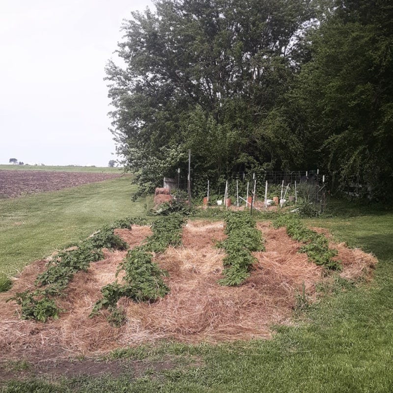 Gardening in two hemispheres holds so many challenges. I prepared this plot for potatoes in Illinois last summer. I dumped tractor loads of compost and old straw into this plot then we dug it all in. I sowed field beans into it to add some green compost, let it grow all summer, then turned it over again and left it alone all winter. Then I was called away to Australia, so I left my gardens to my farm workers. They have cut and planted the potato pieces and they are growing beautifully. It has been rainy and warm. Now all they have to do is continue to mound the old straw up around the plants and let summer do its thing.