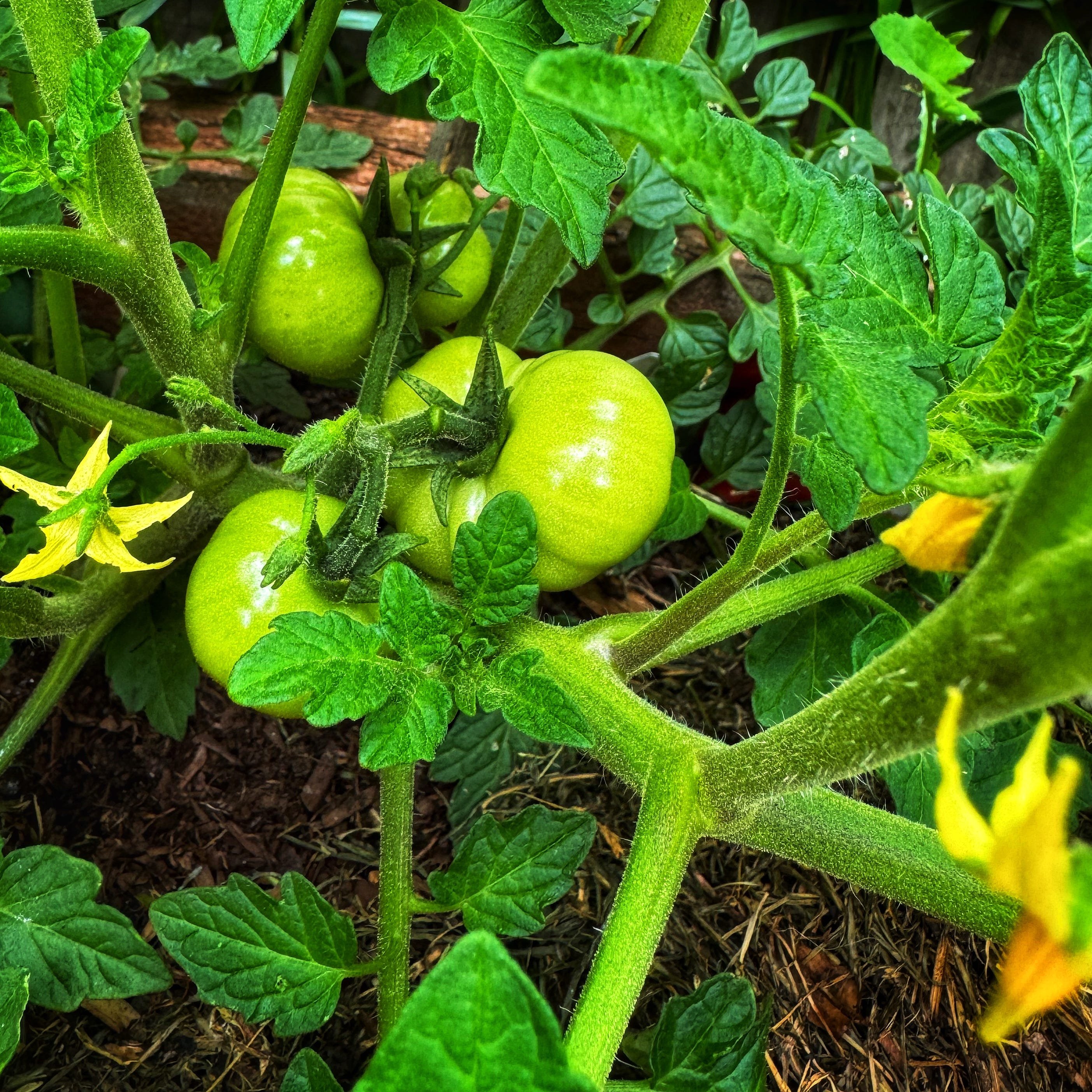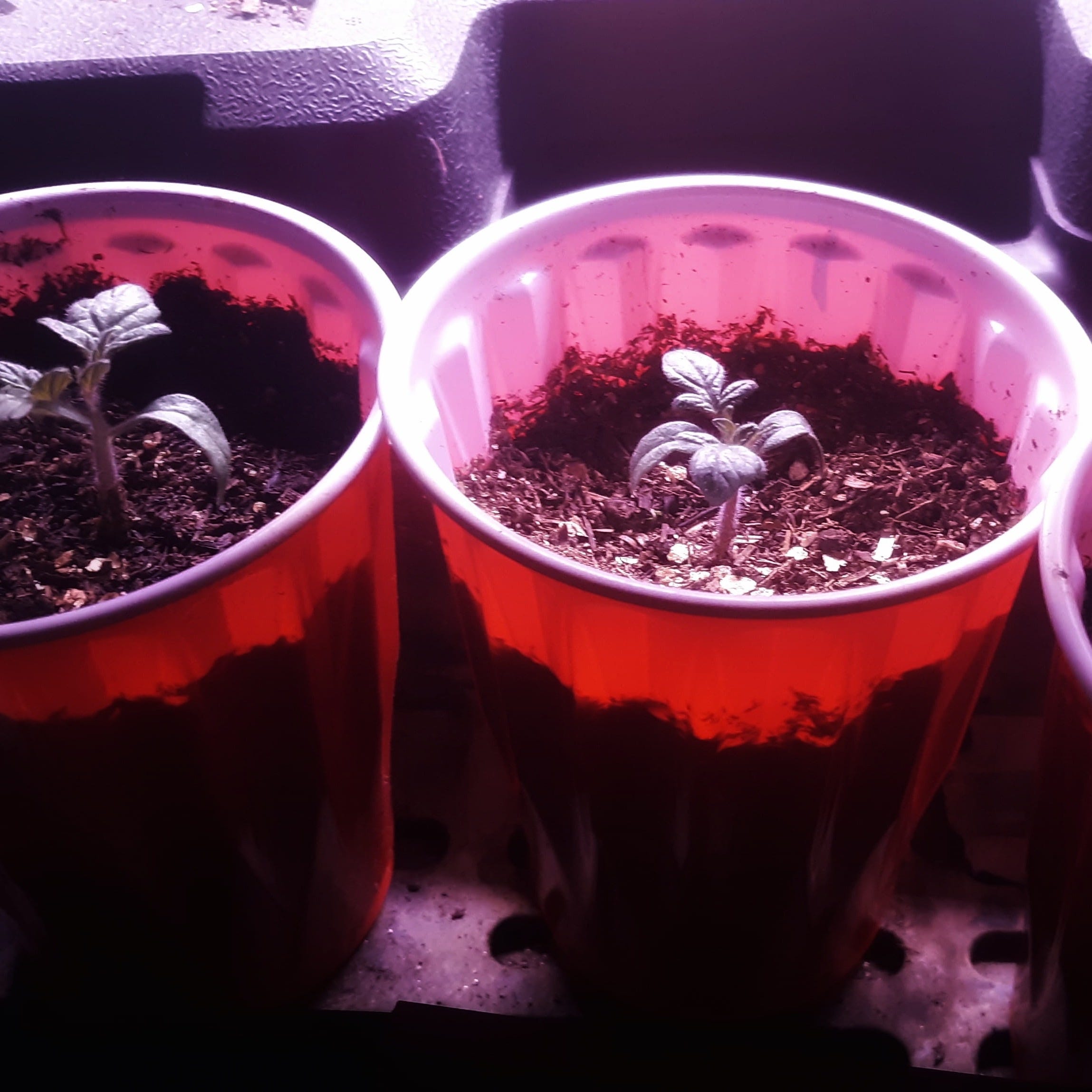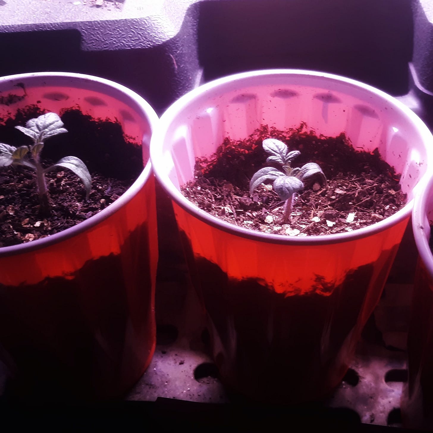(this is a new tomato variety that will grow inside in low light. He has them down in the laundry. We hope it will be a good winter tomato! He is trialing it for us).