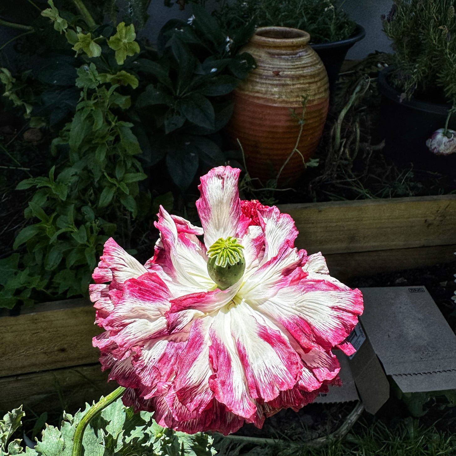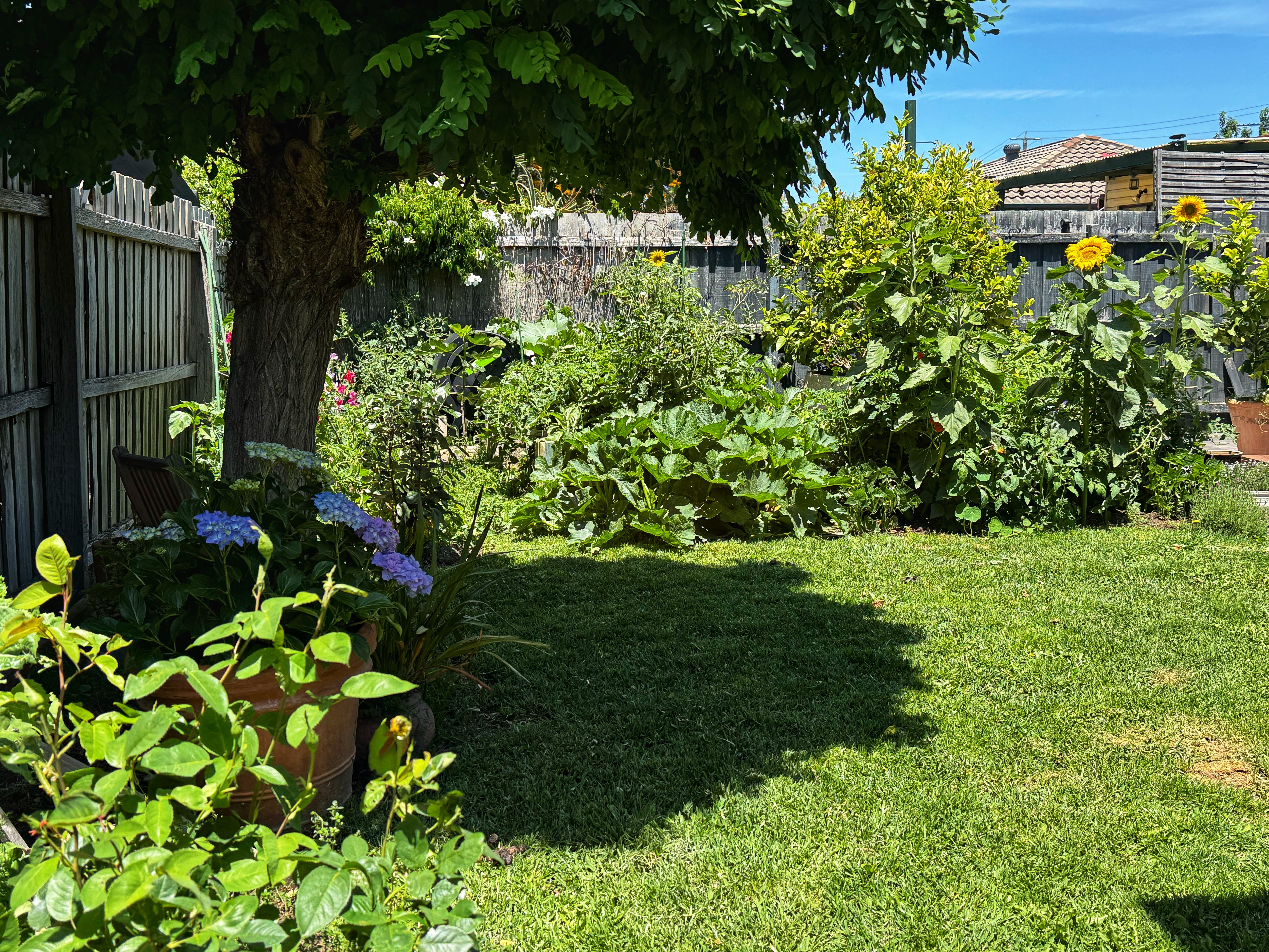 While they all feed and water the animals fast then shuffle at speed back through the snow to the house and the woodstove, I am here in my warm little garden in Melbourne. Getting a little sun.
