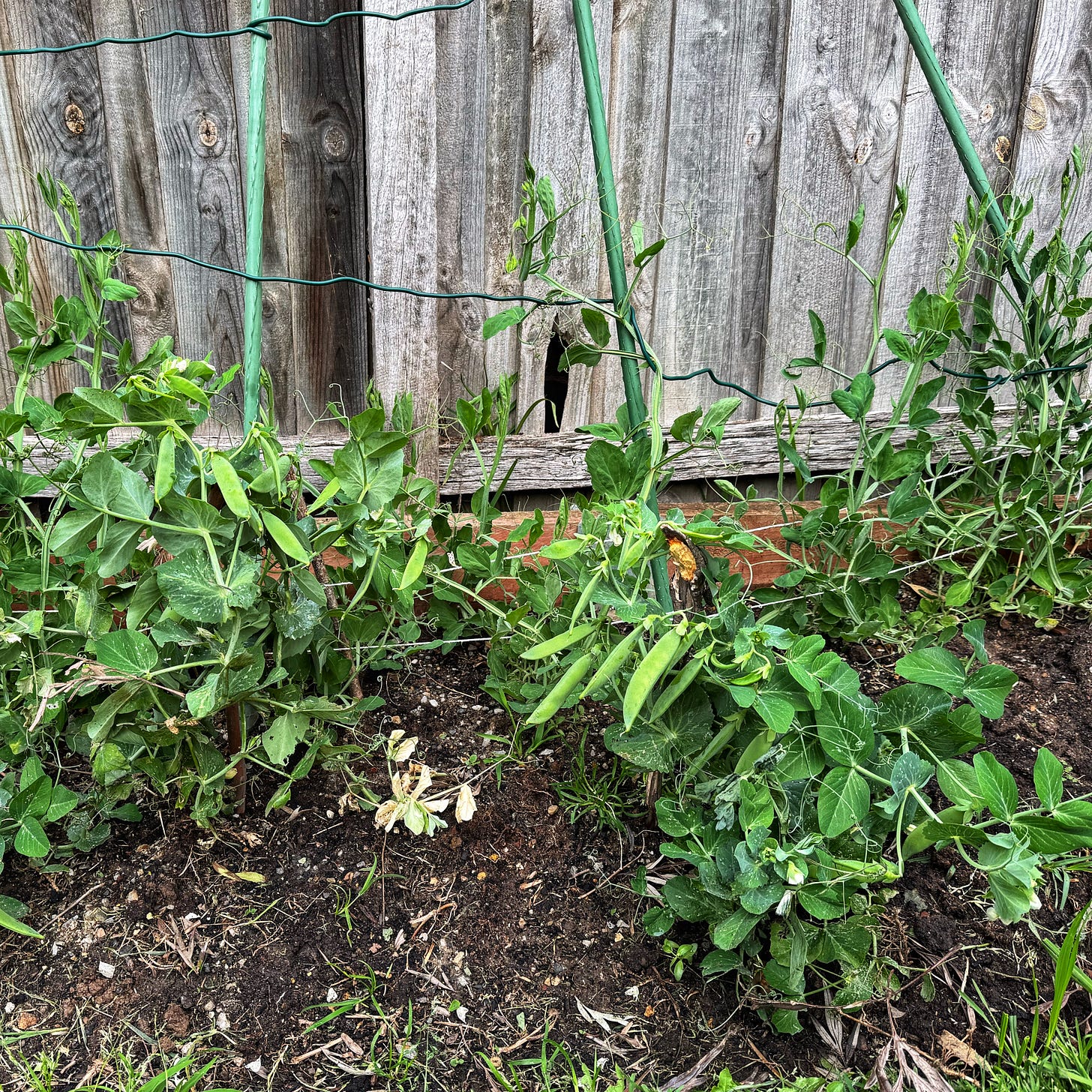 The peas are enjoying the cool spring and podding up nicely. We picked a few to eat when they were young but the rest I am leaving to pick as baby peas.