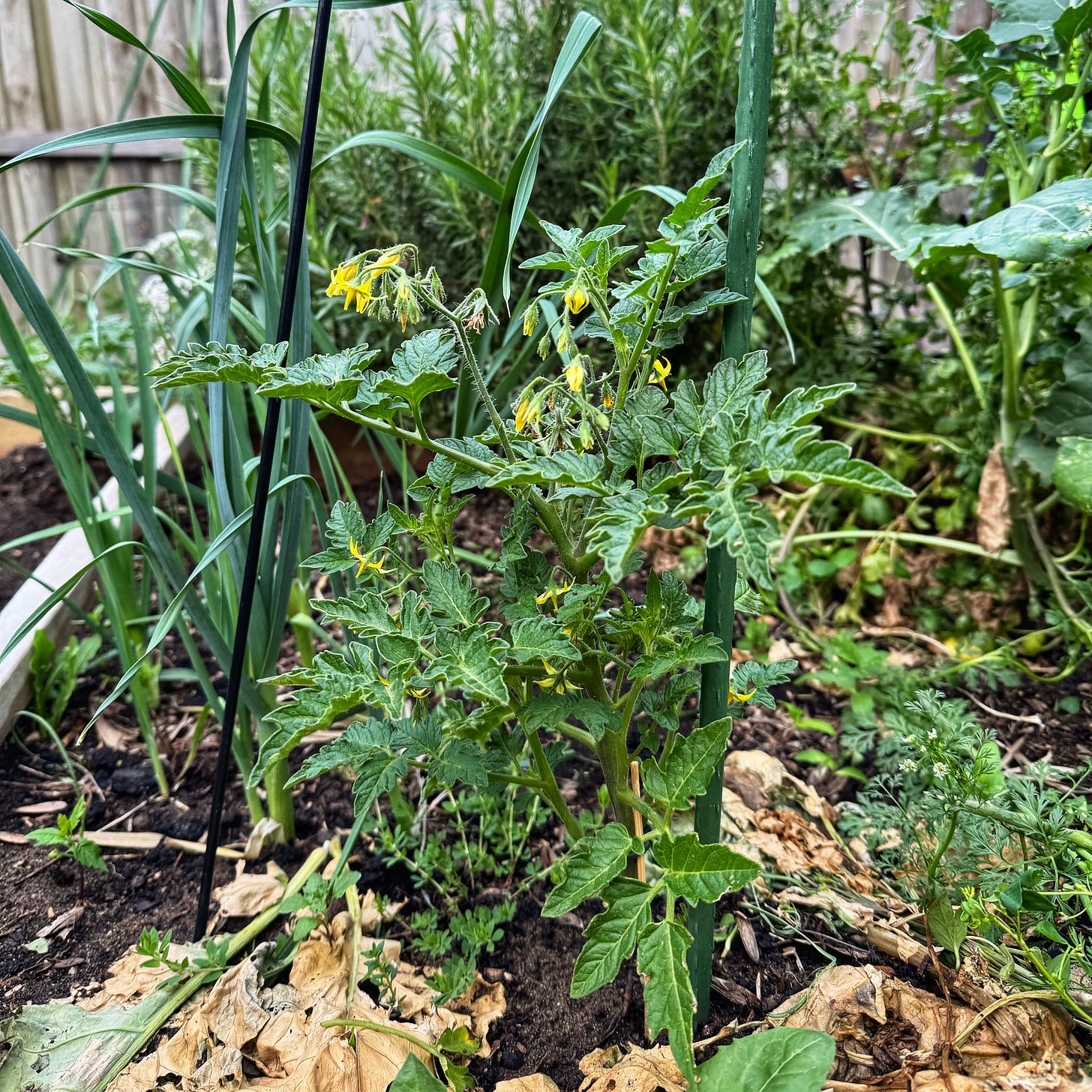 I see a lot of tomato blossoms too! From blossom to a ripe tomato takes about six to eight weeks. The little cherry tomatoes are faster, the big beefsteak tomatoes will take longer.