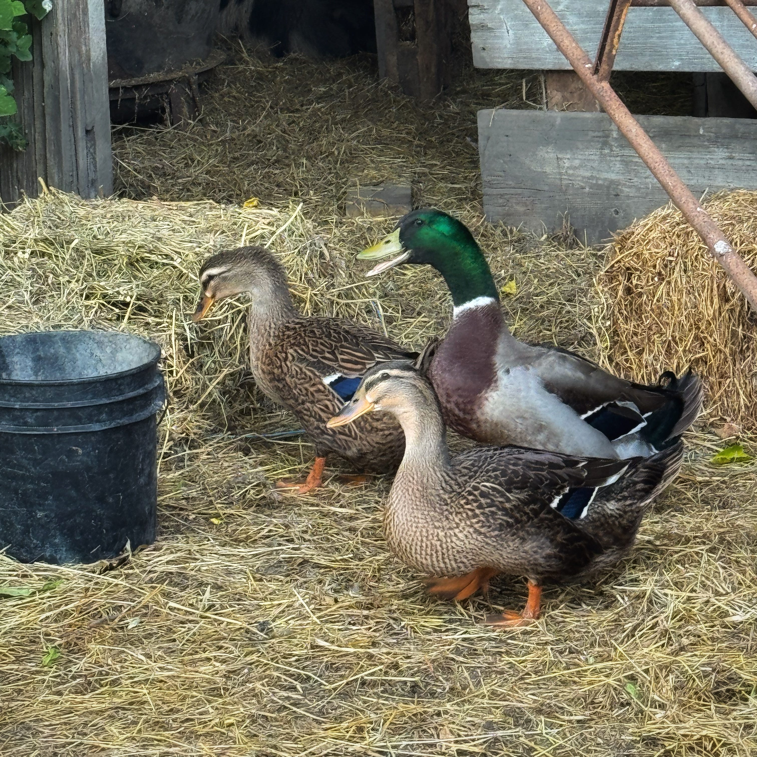 They better not breed he has been growling. But if they survive the winter - and they might because they take themselves to sleep in the barn - one of these ducks will certainly lay!