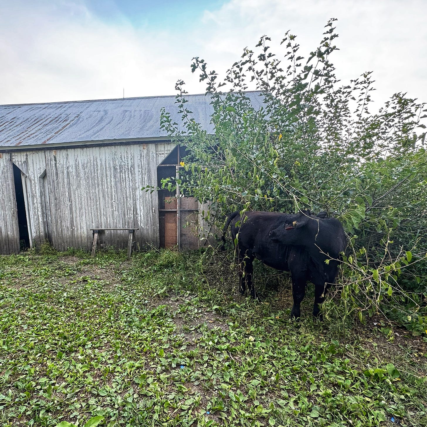 The hen house is designed so we can take a wall off - set it aside - and drive the small tractor in to scrape and scoop the concrete floor with the tractor bucket. There is still a lot of manual labor involved and it will be dusty and dirty but has to be done. At least the heaviest of the heavy lifting is done with the tractor. The cows have cleared away the weeds in front of the wall and the chickens are free range so it should not be too bad a job.