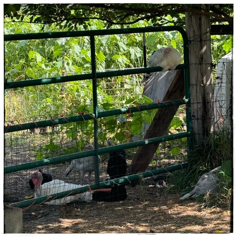 These turkeys are not what I expected. Though, just recently they have begun to gobble. You know that gobble, gobble, gobble sound. I will try to get it on a TKG Take Ten for the Tenners this week - I will try!