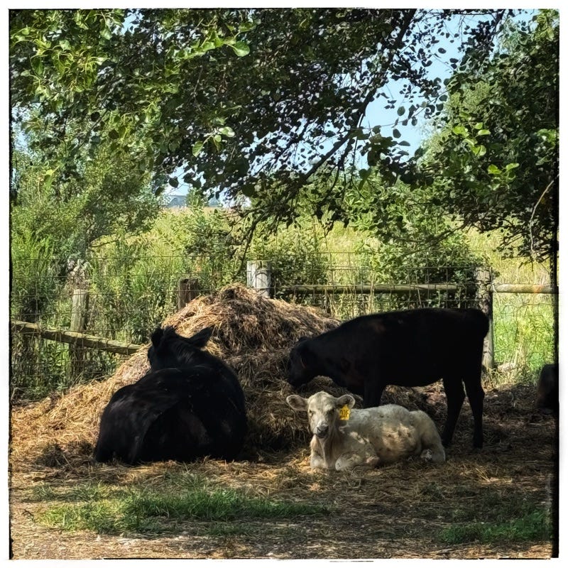 The cows sleep on and near their compost heap.