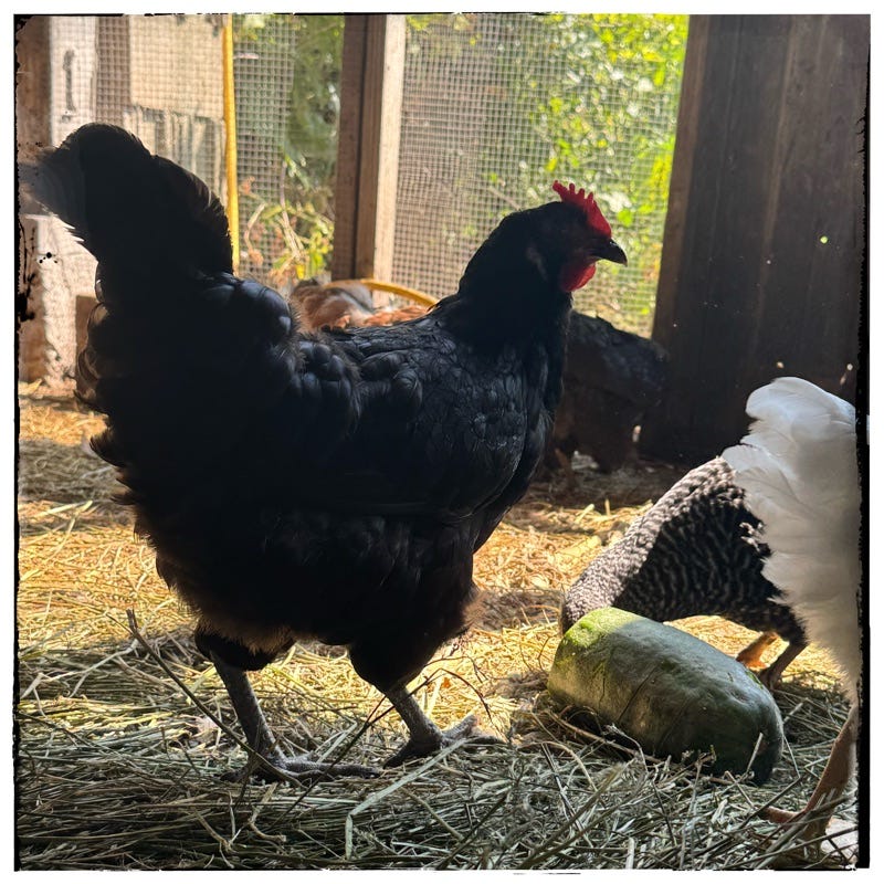 …but the young’ins - my layers in training - they stay out as late as they can. Boo and I have to herd them in almost every evening.